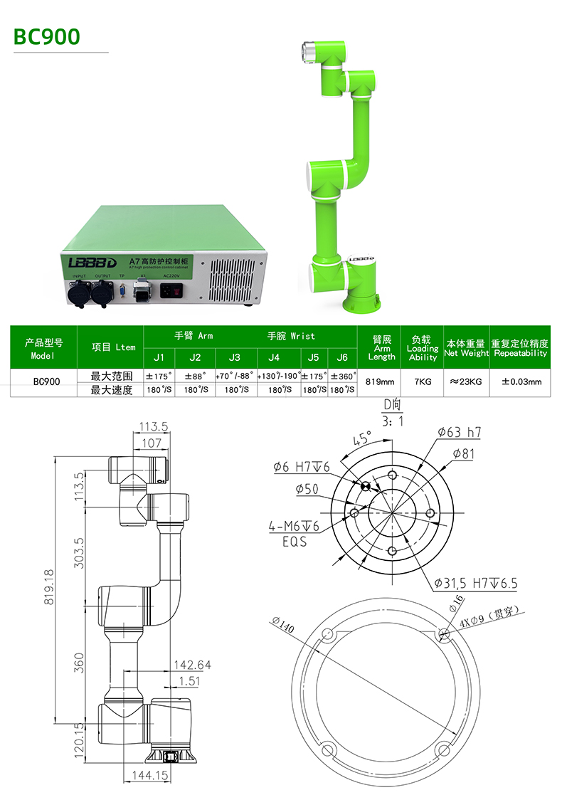 BC協(xié)作型系列六軸機(jī)械手 BC900